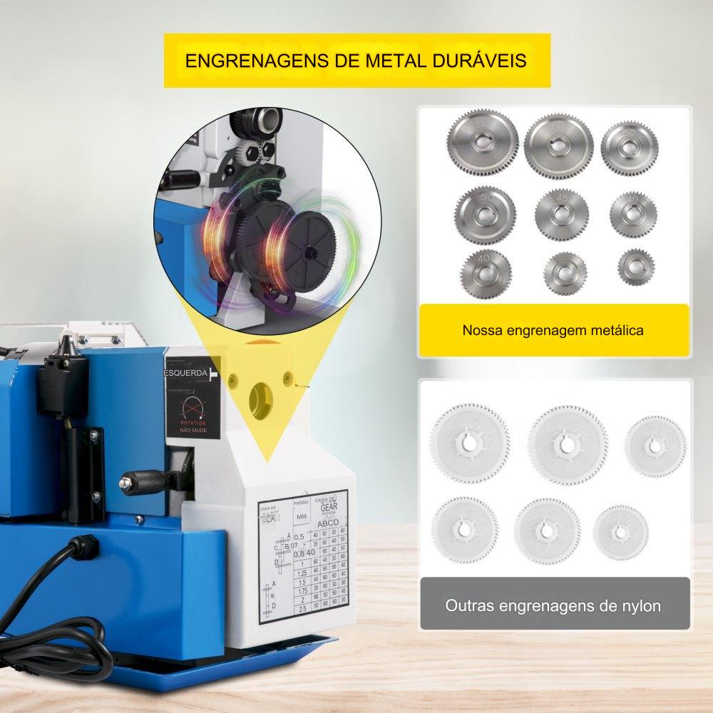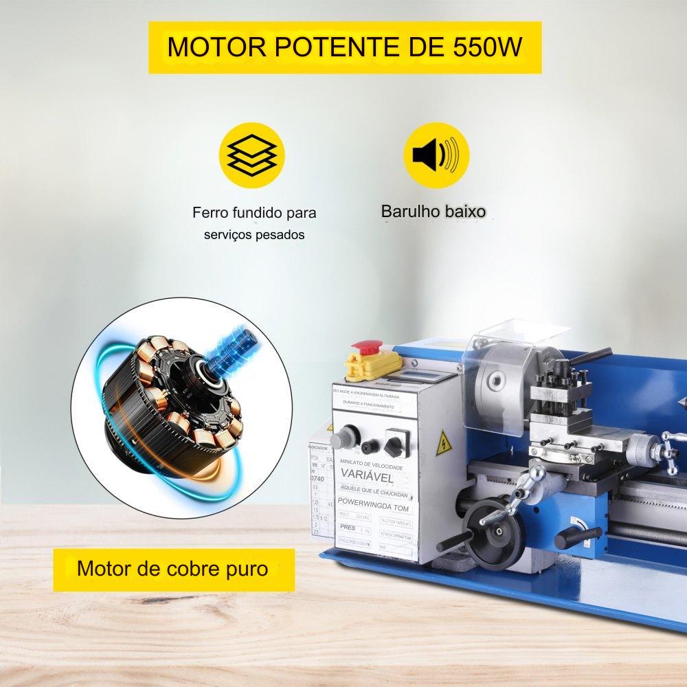 O mini torno de metal também acompanha um conjunto completo de ferramentas de torneamento e acessórios, possibilitando a realização de trabalhos de precisão, como a produção de buchas, fusos, protótipos, modelos e muito mais.