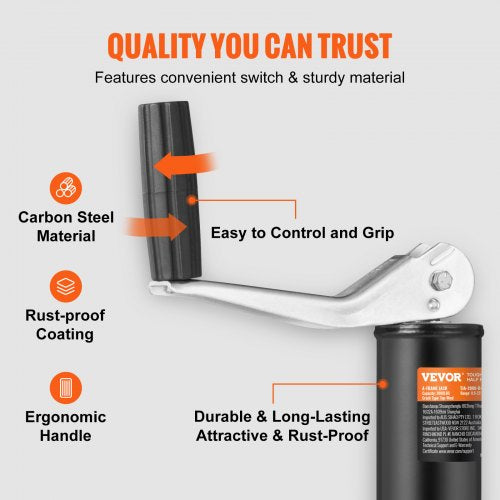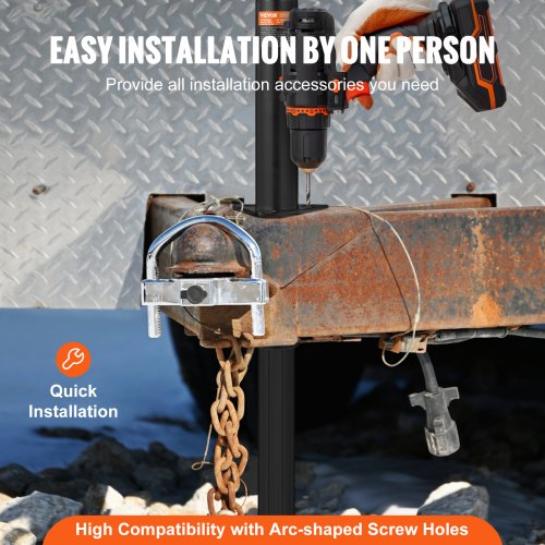 Capacidade de carga pesada: O macaco de reboque VEVOR tem uma impressionante capacidade de carga de 2.000 libras, tornando-o uma ferramenta poderosa para tarefas de elevação. Obtenha suporte confiável ao rebocar! Ele se adapta a todos os reboques de alto ou baixo perfil. Fácil instalação: Nosso suporte para reboque vem com todas as peças necessárias e instruções detalhadas de montagem. Pode ser parafusado no trailer. Tenha seus trailers prontos para uso rapidamente. PROJETADO PARA ESTABILIDADE E DURABILIDADE: Este macaco de reboque é construído para fornecer estabilidade excepcional e desempenho duradouro. É feito de aço carbono resistente e oferece máxima resistência e rigidez. Os tubos internos e externos galvanizados, bem como o revestimento em pó garantem maior resistência à corrosão. Altura ajustável: Nosso macaco de reboque multifuncional oferece uma altura mínima de 635 mm e uma faixa de elevação de 220-570 mm para atender às suas diferentes necessidades. Com ajuste de vários níveis, garante que seu trailer permaneça nivelado em diferentes superfícies da estrada, garantindo uma altura consistente. Experiência de reboque suave! Diga adeus ao tombamento do trailer. mostre mais