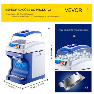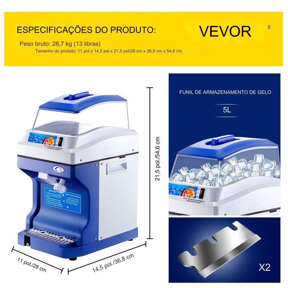 A máquina possui um motor de cobre de alta potência, com 300W, capaz de triturar até 441 lbs (200 kg) de gelo por hora. Sua lâmina de aço inoxidável 420 é afiada e gira a uma velocidade de rotação de 320 RPM. Uma lâmina de reposição está incluída, garantindo a facilidade de substituição.