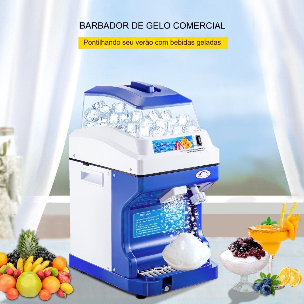 Um botão de ajuste na máquina permite adicionar cubos de gelo e ajustar a finura do gelo, adequando-se a diferentes necessidades de sabor. É possível produzir cubos de gelo finos a grossos, para criar cones de neve, bebidas congeladas, raspadinhas e milkshakes em minutos.