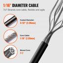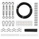 Material durável: O cabo de aço revestido de vinil VEVOR é feito de cabo de aço inoxidável T304 de 7x7 núcleos e uma superfície revestida de PVC que oferece maior tolerância ao uso intensivo e à corrosão climática. A impermeabilização e a melhor proteção UV garantem uma vida útil mais longa em condições ambientais extremas. Kit com tudo incluído: O cabo de aço inoxidável vem com uma variedade de acessórios, incluindo 4 x esticadores (M4), 4 x mosquetões de mola (M4), 8 x alças de corcunda (M4), 20 x mangas de alumínio (M2), 20 x dedais (M2), 16 x parafusos (M4*30), 16 x âncoras (M4), 100 x abraçadeiras, 1 x manual do usuário. Fácil instalação e desmontagem: a instalação e desmontagem DIY podem ser facilmente realizadas com os ganchos de mola ajustáveis em tensão e outros acessórios a serem conectados. O design do rolo aumenta a eficiência guiando o cabo de aço sem emaranhados durante a operação.