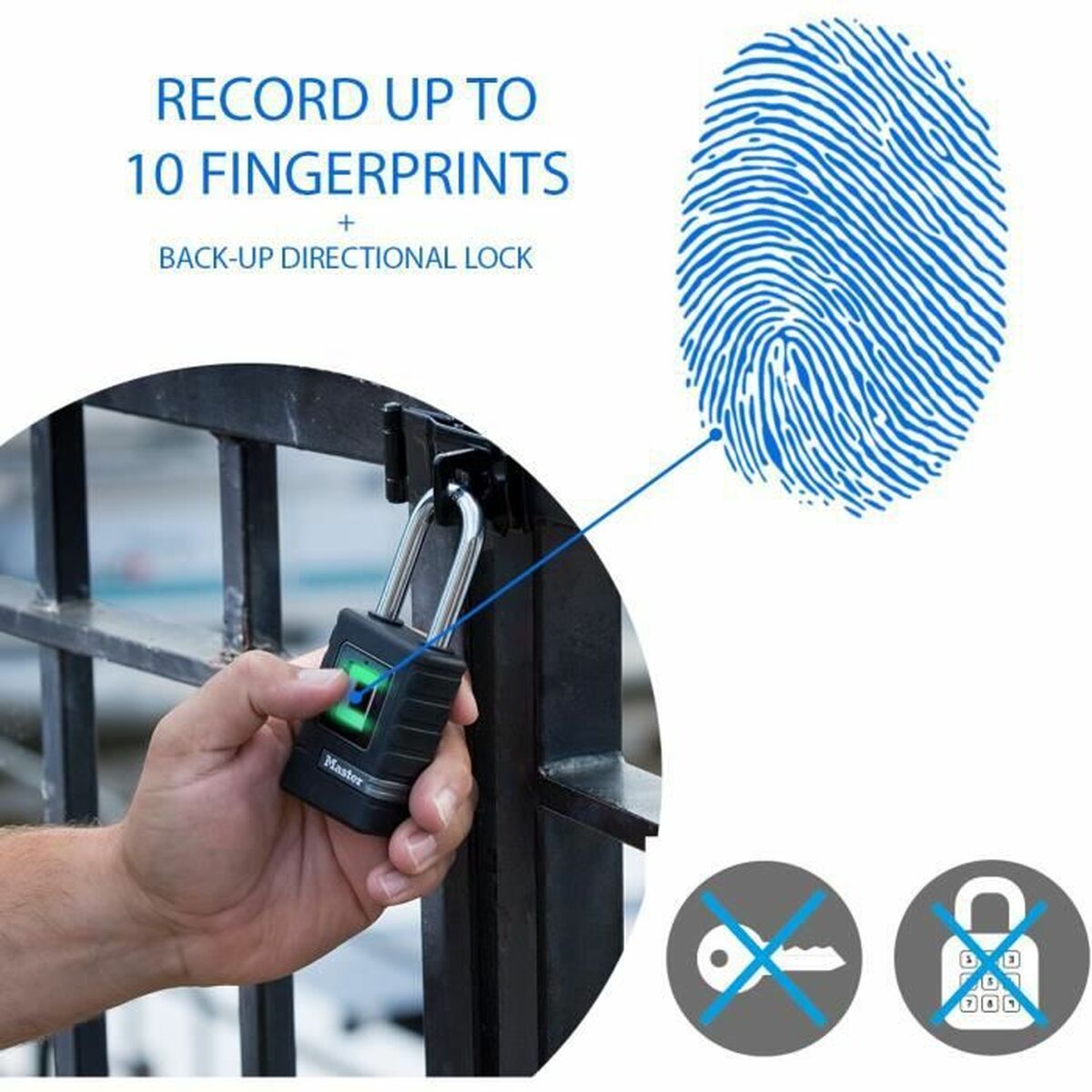Cadeado de Impressão Digital Master Lock Zinco elastómero