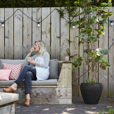 Este durável vaso de flores da Capi é feito nos Países Baixos a partir de materiais reciclados e com métodos de produção neutros para o clima, o que fez com que a Capi Europe recebesse o selo CO2 Neutral Product and Company em 2020. Todos os vasos são adequados para utilização interna e externa e são 100% recicláveis. Apesar do exterior robusto, os vasos são leves e resistentes às intempéries. O seu design exclusivo de parede dupla oferece proteção adicional contra o calor no verão e a geada no inverno. Assim, as suas plantas têm uma vida mais longa! Esta camada de isolamento é indicada pelo interior laranja mostrado nas imagens.