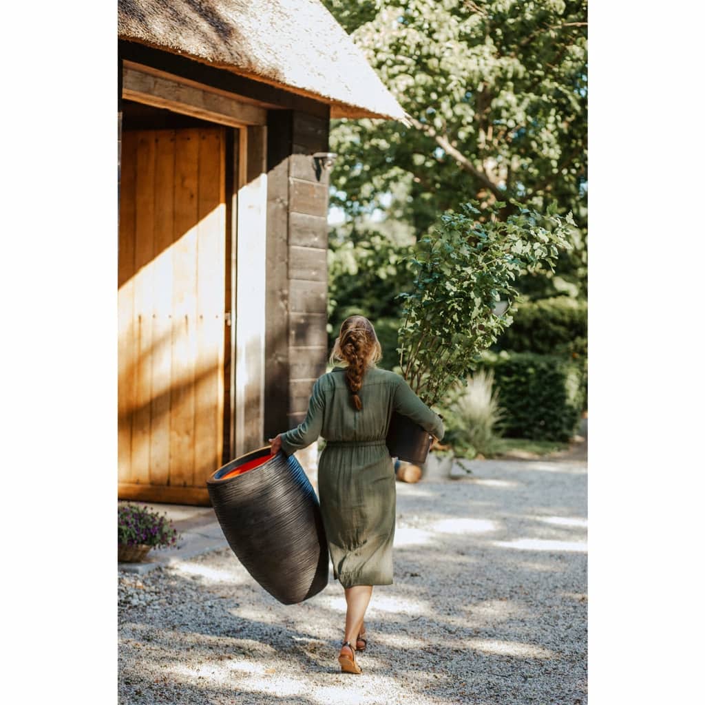 Este durável vaso de flores da Capi é feito nos Países Baixos a partir de materiais reciclados e com métodos de produção neutros para o clima, o que fez com que a Capi Europe recebesse o selo CO2 Neutral Product and Company em 2020. Todos os vasos são adequados para utilização interna e externa e são 100% recicláveis. Apesar do exterior robusto, os vasos são leves e resistentes às intempéries. O seu design exclusivo de parede dupla oferece proteção adicional contra o calor no verão e a geada no inverno. Assim, as suas plantas têm uma vida mais longa! Esta camada de isolamento é indicada pelo interior laranja mostrado nas imagens.