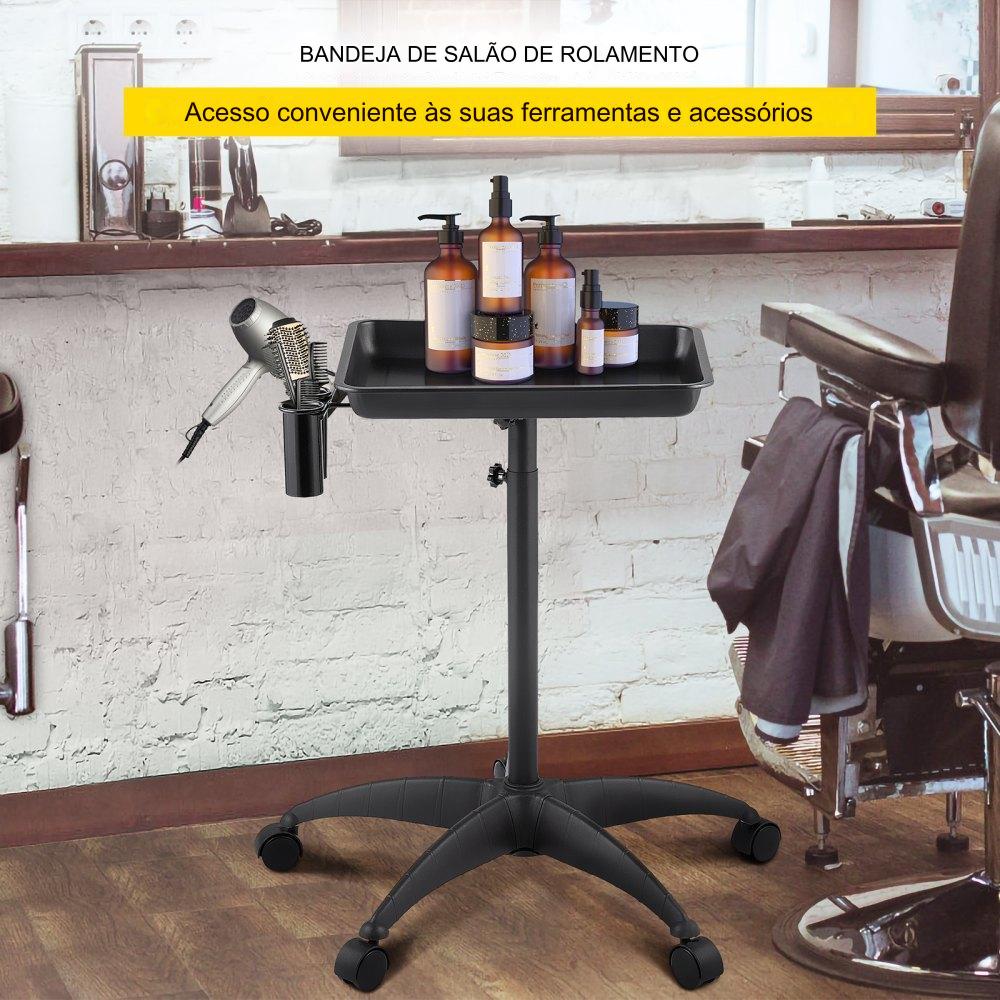 Com um amplo espaço de armazenamento, a bandeja possui dimensões de 45 x 33 cm, garantindo espaço suficiente para armazenar utensílios diversos. Além disso, conta com um suporte para ferramentas, composto por dois recipientes e um anel para secador de cabelo, proporcionando facilidade e praticidade na hora do trabalho.