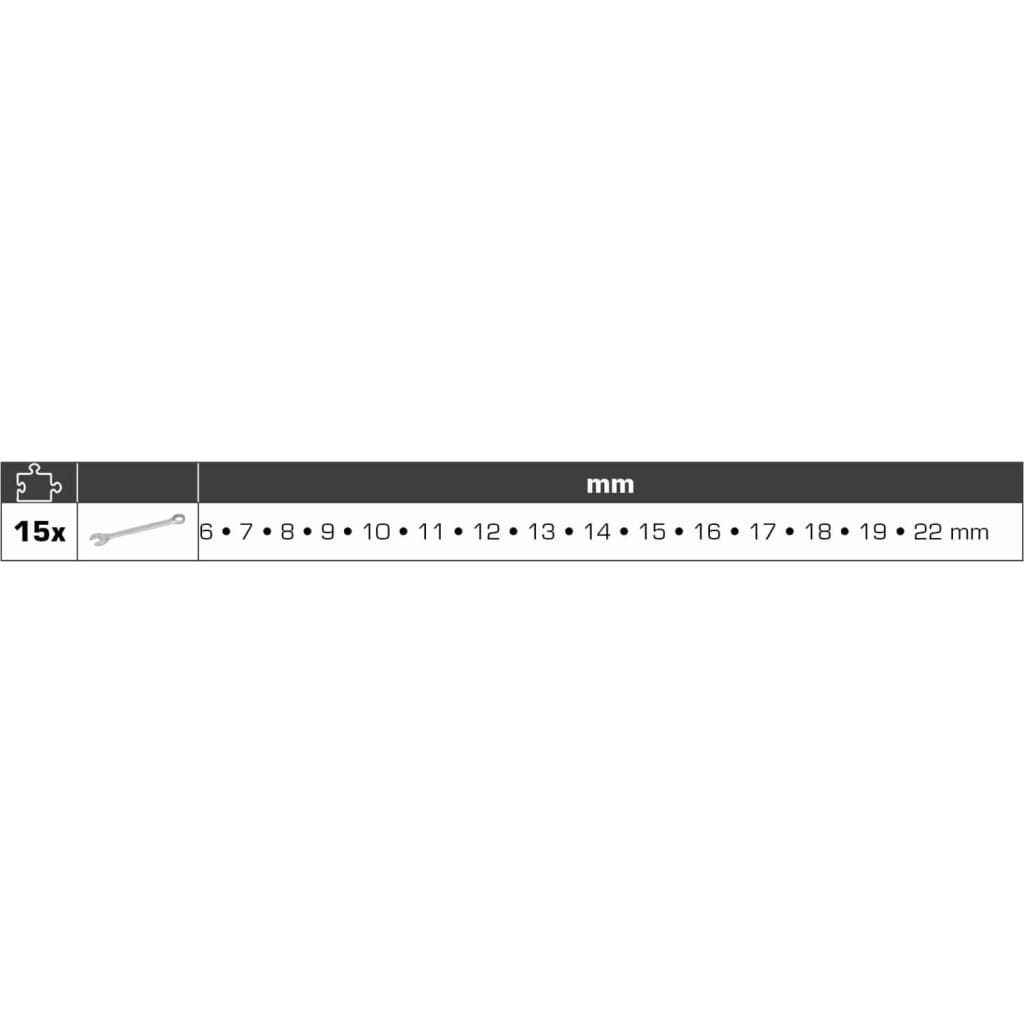O conjunto de chaves combinadas composto por 15 pcs da BRILLIANT TOOLS foi concebido para apertar ou soltar porcas.
