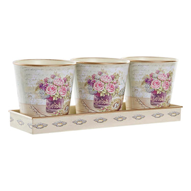 Conjunto de Vasos DKD Home Decor Bege Cor de Rosa PVC Alumínio Shabby Chic 38 x 12 x 14 cm (3 Peças)