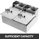 • ·【20L CAPACITY】 - Fritadeira elétrica de 10L + 10L de capacidade (0,35 + 0,35 pés cúbicos) com potência máxima de 2.500W + 2.500W, frita instantaneamente uma grande quantidade de alimentos sem problemas. Dois tanques permitem fritar alimentos diferentes ao mesmo tempo.