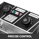 • ·【ÁREA DE CONTROLE DIFERENTE】- Esta fritadeira foi projetada com controle independente para cada tanque. Faixa de temperatura de 50 ~ 200 ℃. Temporizador de 10~60min "Power Light" e "Hot Light" indicam o estado de funcionamento da máquina. Há um adesivo com a temperatura sugerida. Para diferentes alimentos para referência.