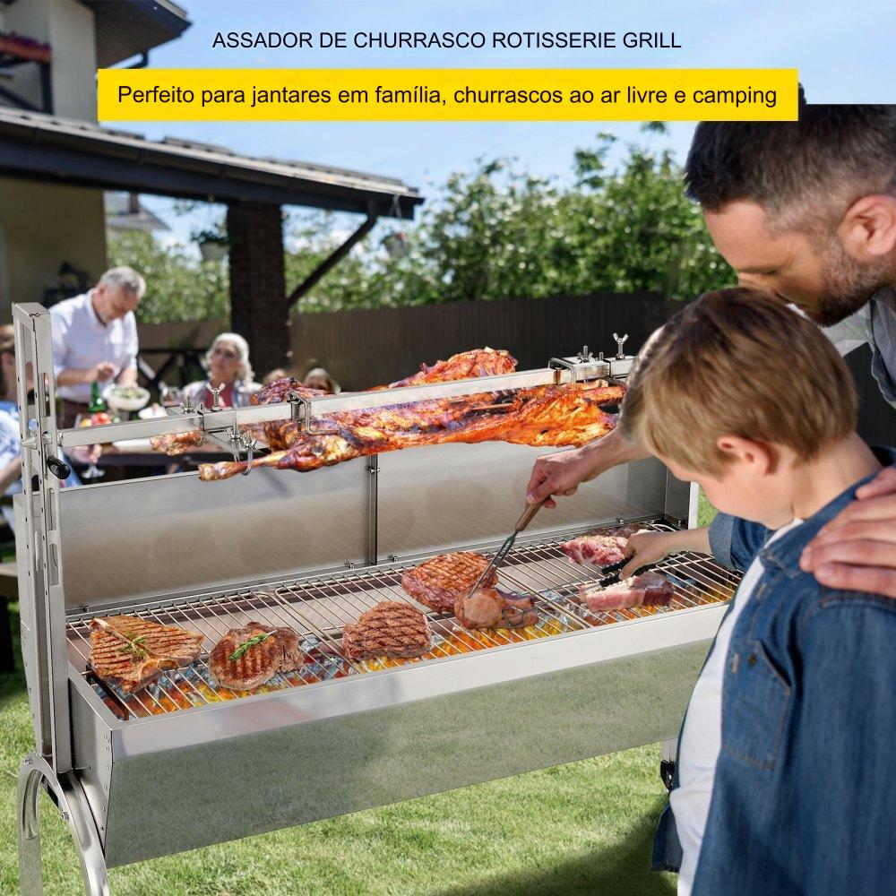 Com seu design eletrônico de rotação automática, a churrasqueira é ideal para grandes celebrações familiares, piqueniques ao ar livre e camping. Sua instalação é simples e pode ser utilizada imediatamente para preparar deliciosos pratos, como filet mignon, cachorros-quentes, queijo, batatas, peru, cebola e camarão.