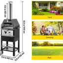 - Rodas e alça que economizam trabalho: o design de roda dupla na parte inferior e a alça conveniente na lateral melhoram muito a portabilidade deste forno de pizza . Você pode movê-lo para vários locais externos remotos sem esforço. Enquanto isso, também é conveniente para armazenamento quando não estiver em uso.