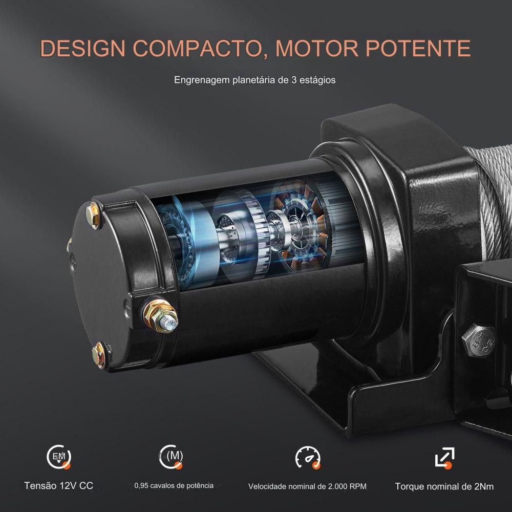 Guincho Elétrico 12V 2000lbs 907kg com Controlo