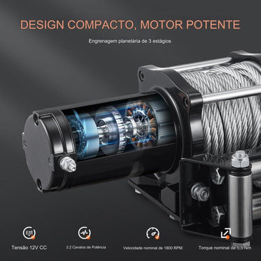 Guincho Elétrico 12V 4500lbs 2041kg com Cabo de Aço