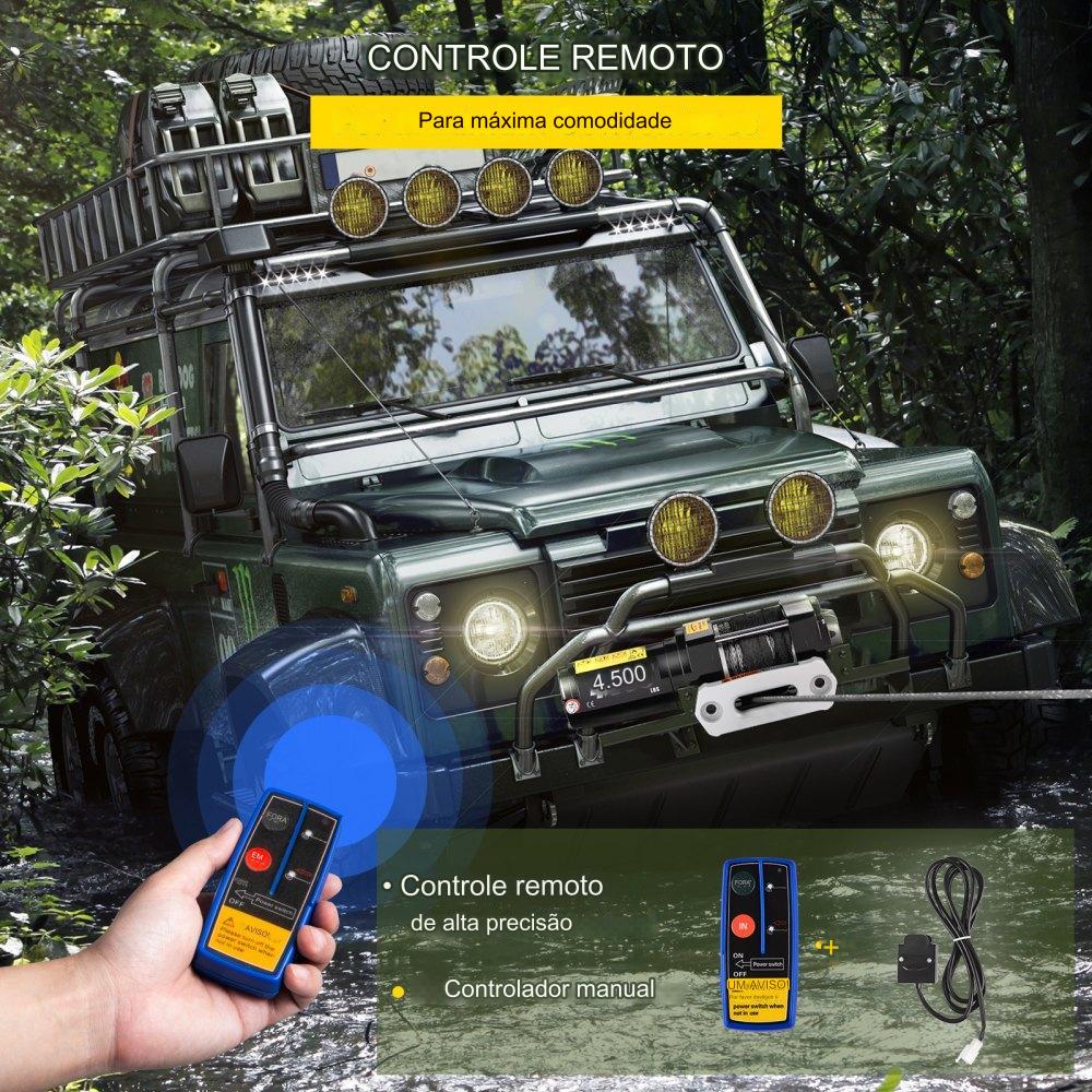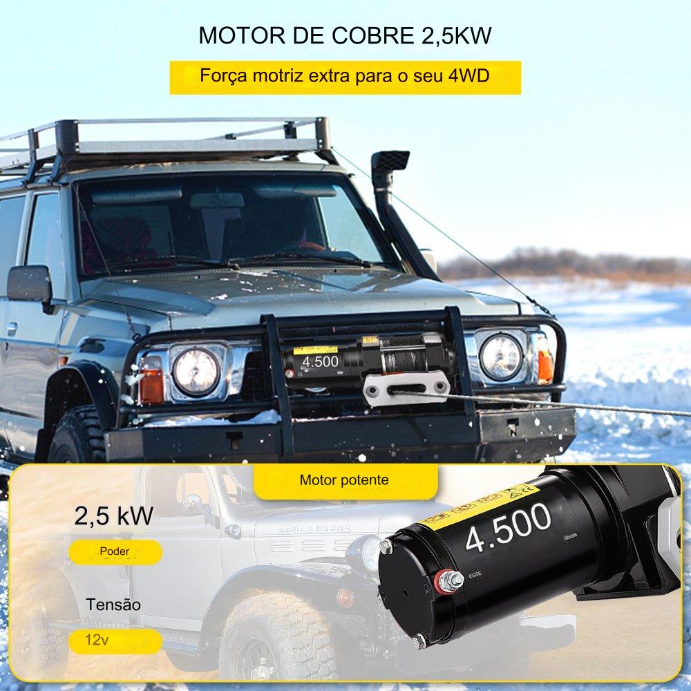 Guincho Elétrico 2041kg 12V DC Cabo Sintético