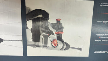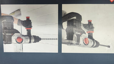 Dimensões: Furadeira e martelo cinzel: cerca de 55 x 29 x 13 cm Alça adicional: cerca de 29 x 9,2 x 7,8 cm Broca: cerca de 1,8 x 32 cm Mala: cerca de 60 x 38 x 16 cm Pano: cerca de 20 x 20 cm