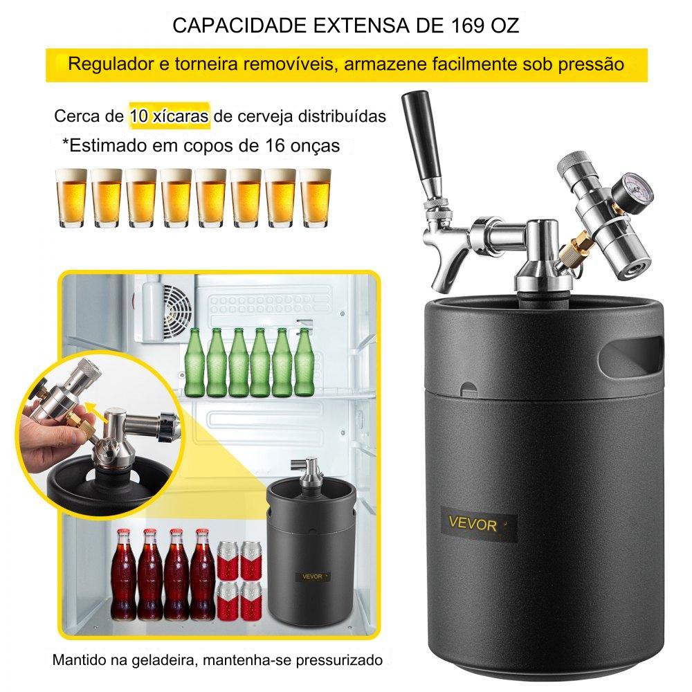O balde de pressão pode armazenar até 170 onças (5 litros) de cerveja fresca, o que equivale a aproximadamente 10 copos de cerveja de 16 oz. Com ranhuras laterais, o transporte fica ainda mais conveniente.