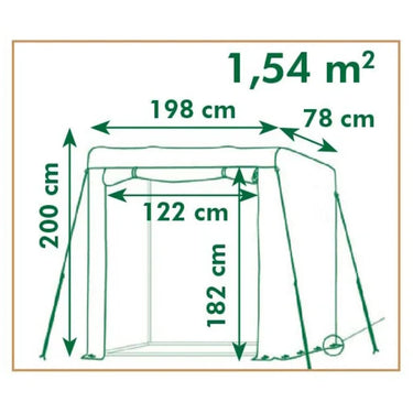 Esta estufa consiste numa estrutura metálica leve, revestida a epóxi e uma cobertura de polietileno resistente aos raios UV. Graças ao estrado, a casa para plantas é fácil de deslocar.