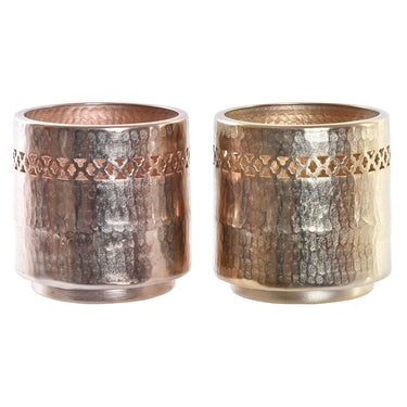 Plantador DKD Home Decor Cobre Dourado Metal Alumínio Corte e Vinco Árabe 17 x 17 x 17 cm (2 Unidades)