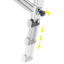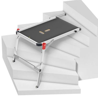 A TP1 pode ser utilizada como plataforma de trabalho ou como base para todos os degraus e escadotes dobráveis da Hailo até 4 degraus. Uma superfície de trabalho antiderrapante integrada num sistema estrutural de alumínio robusto oferece um apoio de pés firme. A plataforma de degraus pode ser utilizada na maioria das escadas retas e em espiral. As suas calhas e pés telescópicos, reguláveis em comprimento e altura, permitem um ajuste flexível à altura e profundidade do degrau. Possui ainda 4 pés com aderência suave para uma maior estabilidade e segurança antiderrapante, numa variedade de superfícies. Graças ao nível de bolha de ar integrado, a plataforma estará sempre numa posição horizontal segura.