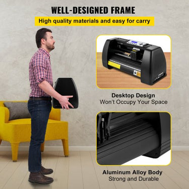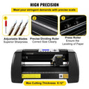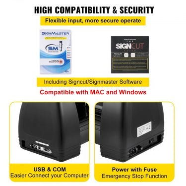 Controle digital eficiente: Largura máxima de alimentação: 14,8 polegadas/375 mm; largura máxima de corte: 11,2 polegadas/285 mm. Esta máquina de corte de vinil está equipada com um LCD que pode controlar efetivamente a velocidade e a potência. Os três rolos de pressão de mola dupla ajustáveis e as hastes de alumínio serrilhadas garantem que a plotadora de vinil funcione suavemente e sem emperrar. Escala precisa: O cortador de vinil é equipado com três lâminas intercambiáveis e uma régua divisória precisa. Precisão de corte: ±0,004 polegadas / ±0,01 mm. Atende às suas necessidades com nitidez de corte e tamanho de corte precisos. Nosso cortador plotter também possui um rolo de pressão que melhora a alimentação do papel. Alta compatibilidade e segurança: Esta máquina cortadora de vinil plotter está equipada com software Signcut e Signmaster e é compatível com MAC e Windows. Bloqueável via USB ou interfaces seriais. Ele também oferece suporte a outros softwares como Graph-Cut e Flexi. O cortador de folhas também possui uma função de parada de emergência para protegê-lo do perigo. mostre mais