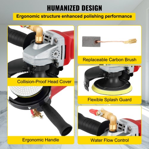 Maior segurança elétrica: Com disjuntor de corrente residual (GFCI) para proteção contra choques elétricos perigosos. A luva de borracha, isolamento duplo e cabo industrial extra longo com comprimento de 1,5 m (59 polegadas) oferecem proteção segura ao usuário. Seis níveis de velocidade ajustáveis: Nossa máquina de polimento úmido possui um motor de 860 W e oferece uma velocidade ideal de polimento de 1100 a 5000 rpm. O interruptor de velocidade pode ser facilmente operado durante o uso e ajustado conforme necessário. Para que você possa lixar e polir com eficácia. Detalhes atenciosos: O conjunto de ferramentas de polimento está equipado com um regulador de fluxo de água. Para regular a quantidade de água, você pode girar a válvula na parte superior. Uma proteção à prova d'água evita choques elétricos. As cabeças de água de três furos são posicionadas cada uma em um ângulo de 120 graus, garantindo uma distribuição de água uniforme e adequada. O conteúdo da entrega inclui todos os acessórios necessários, incluindo pedras de amolar, oito discos de polimento úmido, um RCD, um conector de tubo e as conexões associadas.