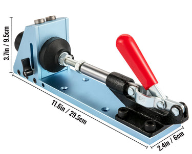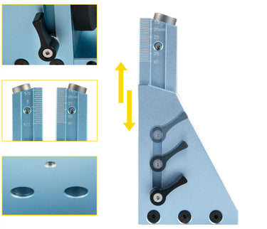 · Construção totalmente em alumínio: O conjunto de gabaritos para furos de bolso é feito de alumínio anodizado de alta resistência para garantir uma base de suporte de madeira confiável durante a operação. A braçadeira de alternância ajustável aceita uma ampla gama de espessuras.