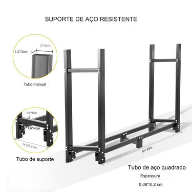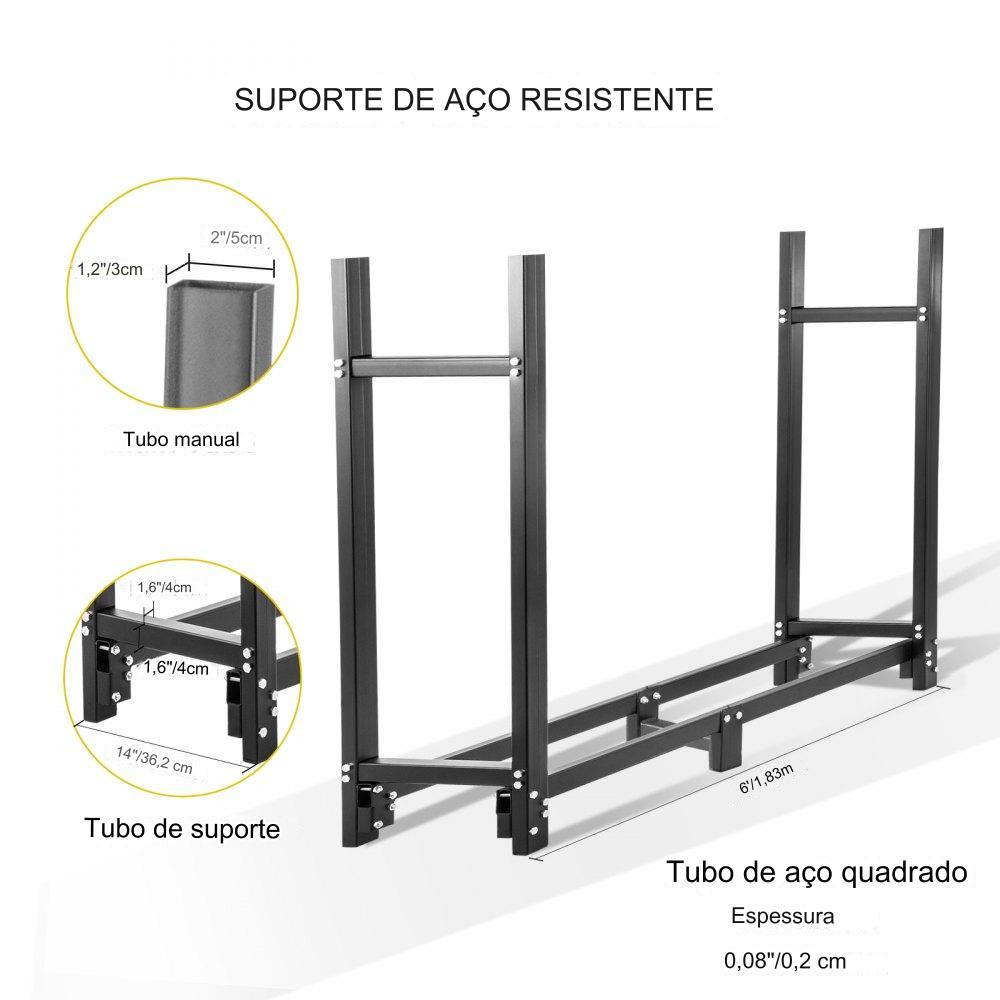 Com uma capacidade de peso de 590 kg, este organizador de lenha ou armazenamento mede 183,5 x 36,2 x 122 cm (C x L x A). Possui um tubo de suporte central de 34 cm de comprimento para manter seus troncos de madeira maciços de forma organizada.
