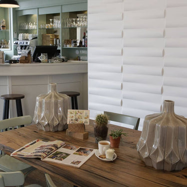 Os cubos decorativos de parede em relevo contribuem para um design intuitivo que é adequado para todas as divisões e estilos de decoração. A nossa decoração de parede em 3D mede 50 por 50 cm, podendo fazer a instalação facilmente sozinho(a). A cor original dos painéis de parede em 3D da Wall Art é branco pálido, mas o painel 3D pode ser pintado com qualquer tipo de tinta (à base de água e óleo), ou seja, pode pintá-los na cor que desejar!