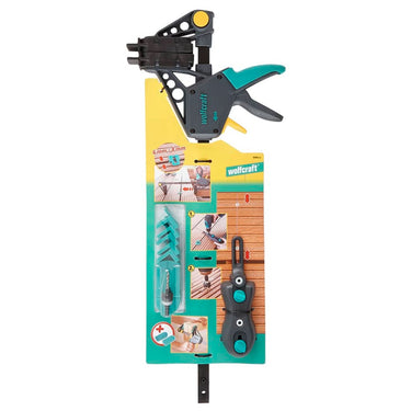 Este conjunto para assentamento de deque da wolfcraft é um kit abrangente que lhe permite assentar um deque de forma rápida e precisa. É perfeito para o posicionamento e alinhamento preciso dos furos nas placas do deque.