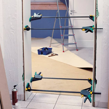 Com até 120 Kg de pressão de aperto, esta ferramenta é robusta e potente. O seu trilho de alta qualidade garante uma força de aperto elevada e duradoura. O grampo é muito simples de manusear e prende com segurança devido ao seu punho ergonómico com zona antiderrapante. Apresenta também a vantagem de uma mudança sem esforço para a função de expansão, bastando pressionar um botão.