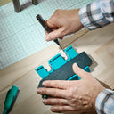 É ideal para a montagem precisa de pisos laminados, por exemplo, à volta dos tubos de aquecimento. O medidor de contornos analisa a linha de corte e transfere-a para o material a ser colocado. Possui uma alavanca de fixação para fixar as pontas do contorno, evitando assim o deslize do mesmo. A largura e profundidade máximas do contorno são 130 mm e 30 mm respetivamente.