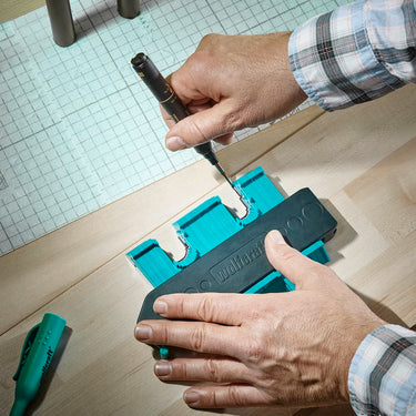 Este medidor de contornos da wolfcraft, com o seu design em plástico resistente, é a escolha perfeita para a transferência fácil e precisa de cantos e contornos para o material de piso, para que possa ser cortado.